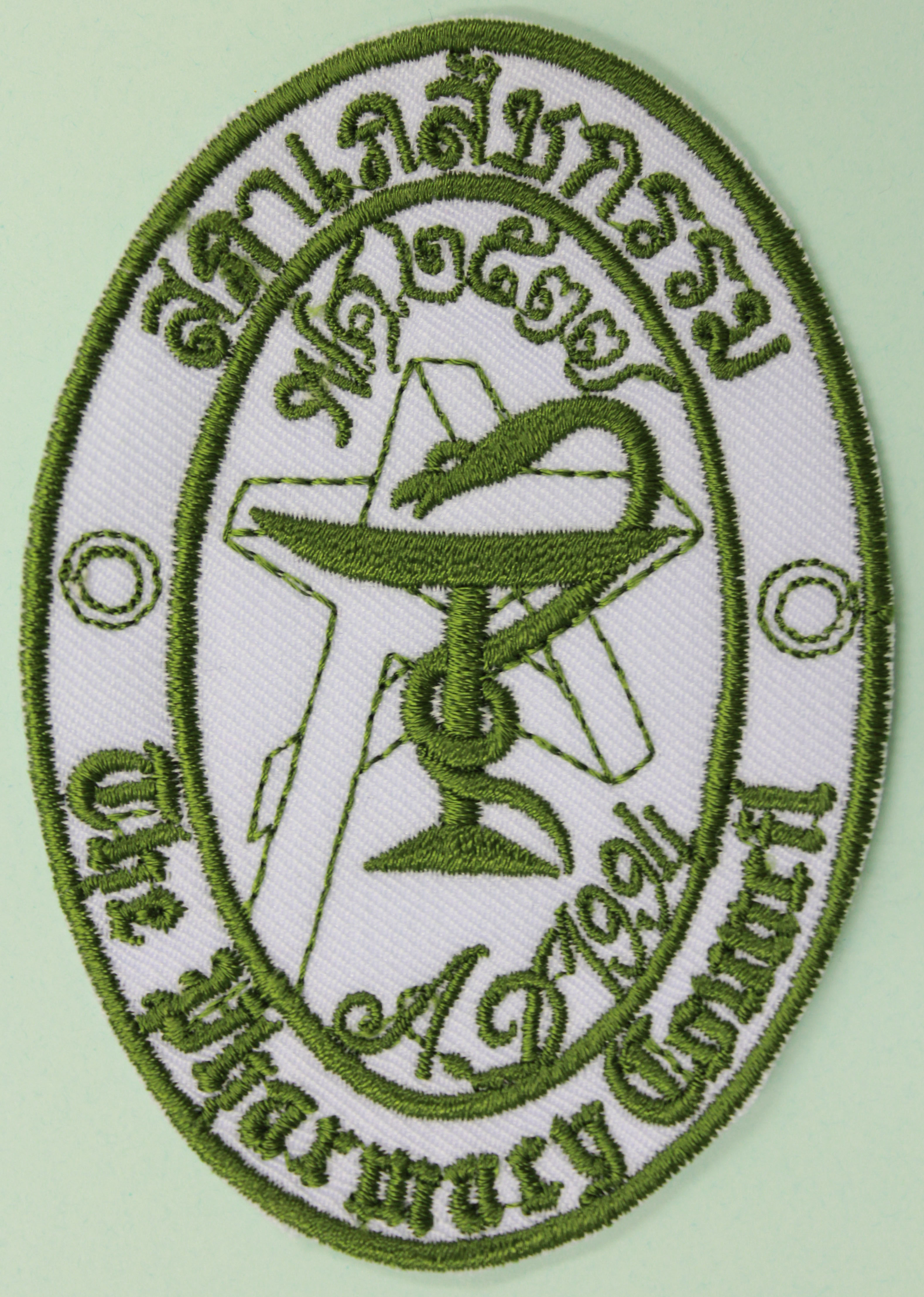 อาร์ม ตราสภาเภสัชกรรม สำหรับเย็บติดกระเป๋าเสื้อกาวน์สำหรับเภสัชกร จำหน่ายชิ้นละ 50 บาท